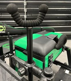 De achterste steun voor de feederhengel kan snel op de zitkist worden geklikt met een snelsluiting (Easy Fix).